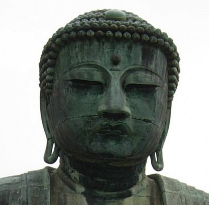 - vu de loin, le Bouddha Amida se tient sous notre regard, il est à notre main, nous ne rencontrons pas ses yeux tournés vers le sol : l’aspect colossal ne joue pas assez pour produire son effet.