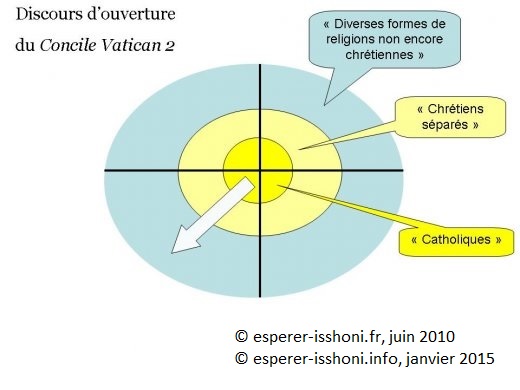 - Le mouvement proposé part de l’Église catholique, puis atteint les « chrétiens séparés » et les adeptes de « formes de religion encore non chrétiennes ».