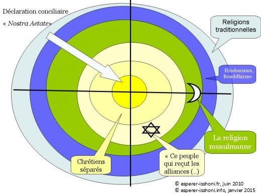 Signalons enfin la disparition du cercle grisé correspondant aux non-croyants ( les agnostiques et les athés). La déclaration Nostra Aetate porte en effet sur les relations avec les religions, dont l’athéisme et l’agnosticisme refusent de relever.