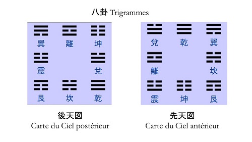 Dispositions des trigrammes (d’après l’article en japonais dans Wikipedia