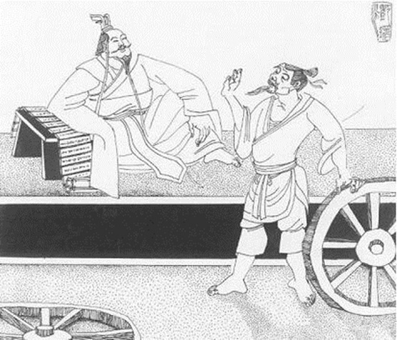 24§. Dans l’extrait du chapitre 6 du Zhuang Zhou, un duc et un charron se trouvent réunis dans un même bâtiment. Le charron aperçoit le duc en train de lire et il lui demande ce qu’il fait.