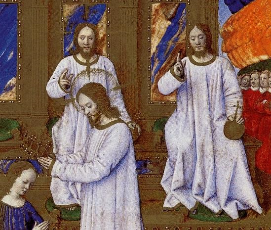 Le Couronnement de la Vierge (détail), Enluminure de Jean Fouquet, Livre d’heures d’Etienne Chevalier, avant 1461 (musée Condé, Chantilly, France)