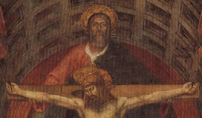 La Sainte Trinité (détail), fresque, Masaccio, 1426-1427, 489 x 317 cm (Santa Maria Novella, Florence, Italie)