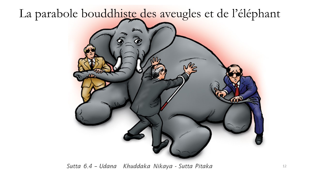 30§. Sauf que ce n’est pas ce que dit la parabole. Le roi – le Bouddha - sait ce qu’est un éléphant et il sait que les aveugles ont tort.