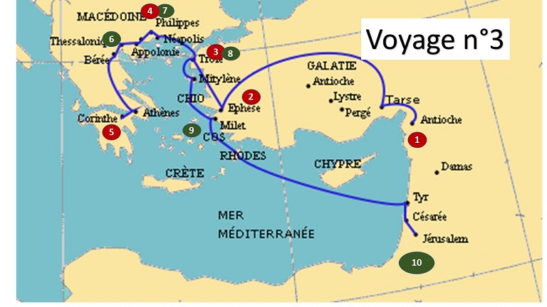 - au troisième voyage, Paul revient sur le sol européen avant d’entamer sa « Passion ».